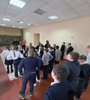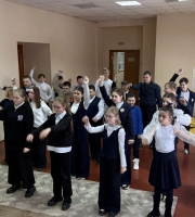 Сегодня в Районном Доме народного творчества, состоялась Всероссийская акция « Зарядка с героем».Зарядку для учащихся СОШ №1 провела юная девушка , но уже по- своему большой герой. Елизавета Мацнева ,...