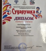 Вокальный ансамбль "Вдохновение" ( рук.Сацук М.В.) принял участие в епархиальном фестивале "Пасхальный благовест" и был награжден дипломом Лауреата фестиваля. Поздравляем и желаем успеха! ...