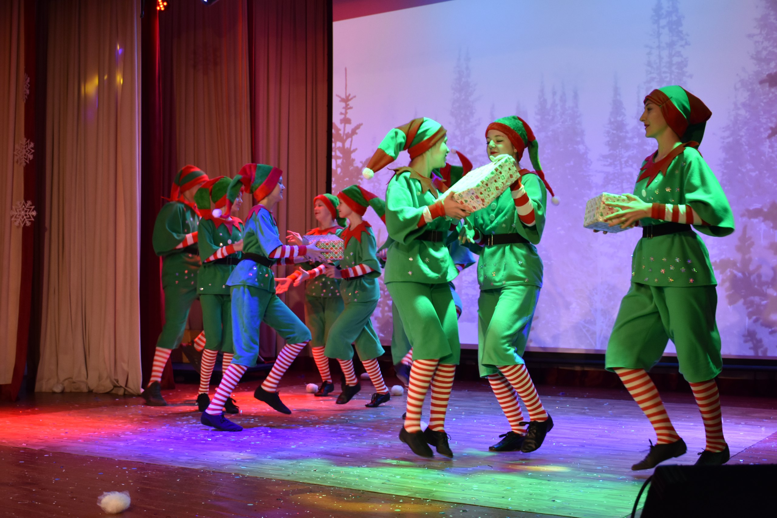 Ребята стали участниками захватывающего новогоднего приключения, где храбрые Заяц и Снеговик спасли Новый год из лап коварной Бабы Яги и Кикиморы, похитивших новогодний календарь. Яркое представление, весёлые игры, зажигательные танцы от Деда Мороза и Снегурочки подарили детям море радости и позитивных эмоций!