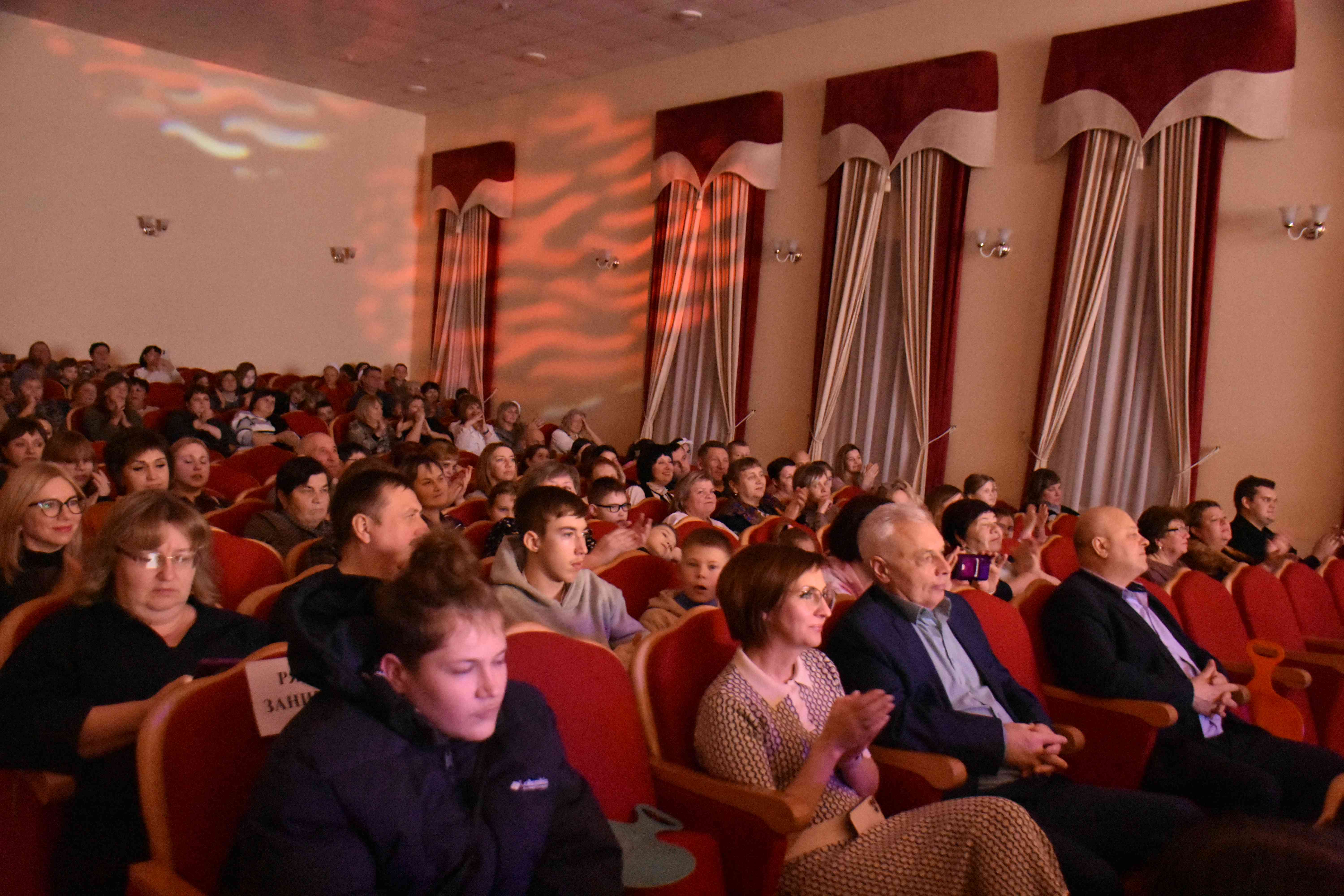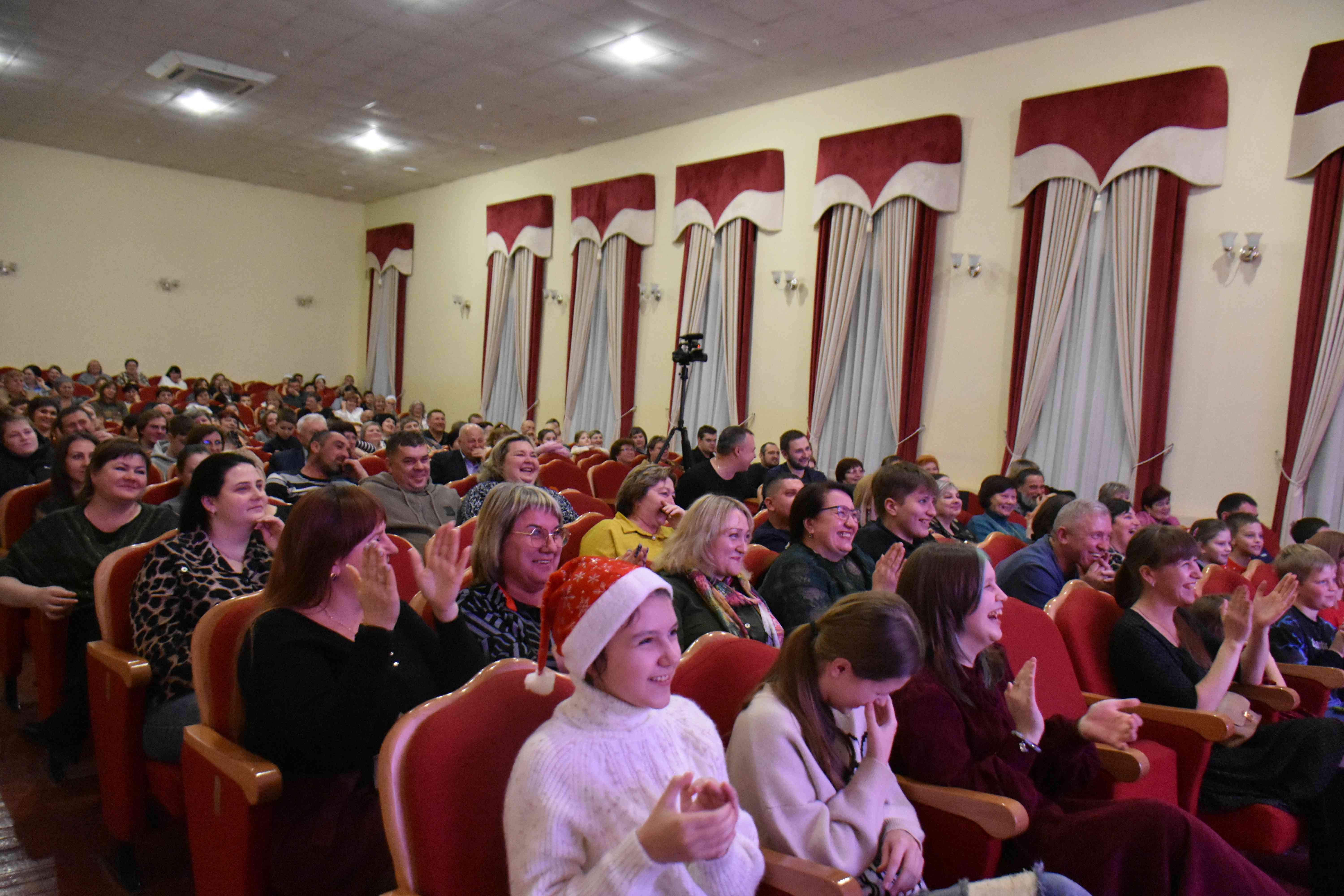 Концерт был наполнен яркими танцевальными и музыкальными номерами от творческих коллективов района. Зажигательные ритмы, красивые голоса и красочные костюмы создавали в зале атмосферу настоящего праздника. Зрительный зал был в полном восторге: гости от души смеялись над шутками, аплодировали артистам и дружно подпевали знакомые новогодние хиты и песни из любимых фильмов.
