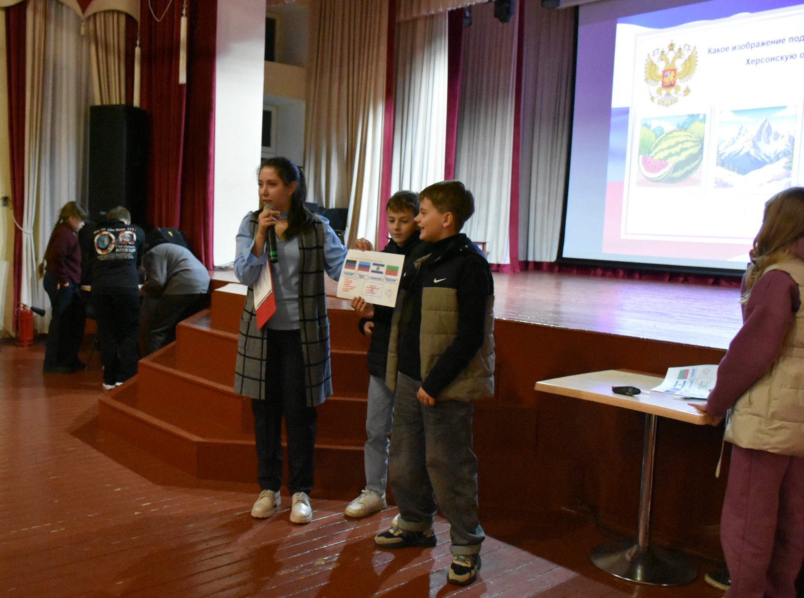 В рамках Всероссийской акции «Спасибо, что #МЫВМЕСТЕ» на сцене Районного Дома народного творчества прошло интерактивное занятие-путешествие "Связь времен: Донбасс и Новороссия", которое было посвящено истории, культуре и героическому наследию ДНР, ЛНР, Херсонской и Запорожской областей.