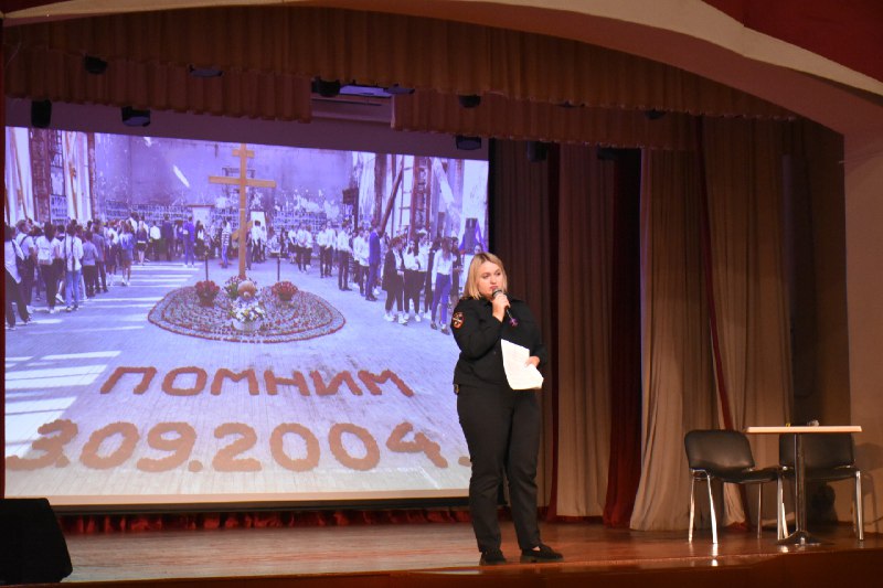 Ежегодно 3 сентября в России отмечается День солидарности в борьбе с терроризмом. Этот день связан с одним из самых трагических событий в истории нашей страны – террористическим актом, произошедшим в 2004 году в городе Беслане в Северной Осетии. По данным следствия, в школе террористы удерживали 1128 заложников.3 дня… без еды… без воды… В этот день в России проводятся траурные шествия, памятные акции и митинги. В РДНТ для 7 и 8 классов Фатежской СОШ №2 состоялось мероприятие с символичным названием " В небеса поднимались ангелы" . Волонтёры отряда "Данко" рассказали ребятам о том, как разворачивались эти трагические события! Тогда , при проведении спецоперации было спасено 918 человек, а в результате теракта с 1-го по 3-е сентября 2004 года погиб 331 человек, среди которых 186 детей, 15-учителей. Более 900 человек получили ранения. Ребята почтили память всех жерт террористических актов , минутой молчания . В завершении встречи от лица МО МВД Фатежский с профилактической беседой о мерах безопасности выступила юристконсульт правового направления, старший лейтенант внутренней службы Светлана Панкратова.
