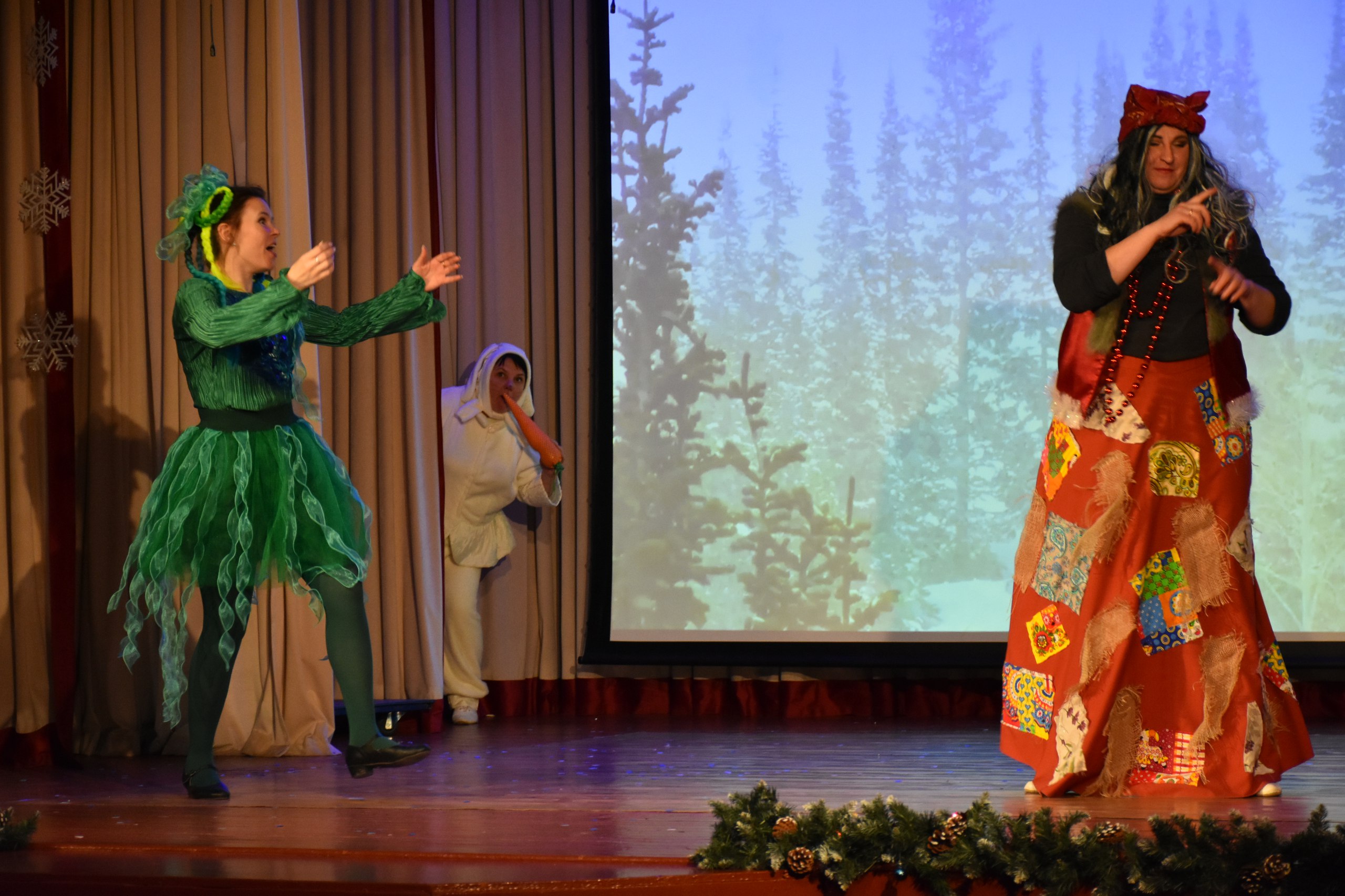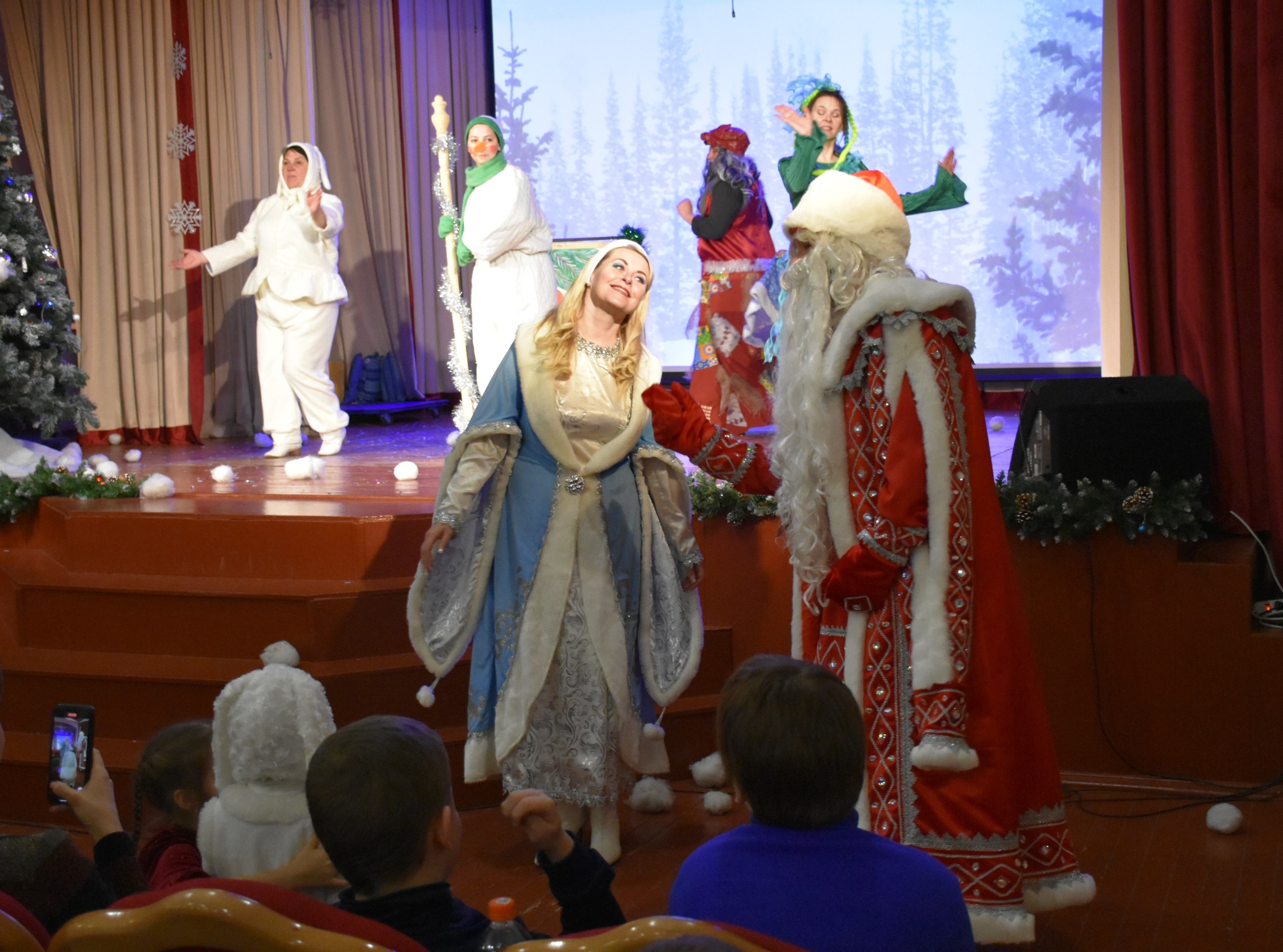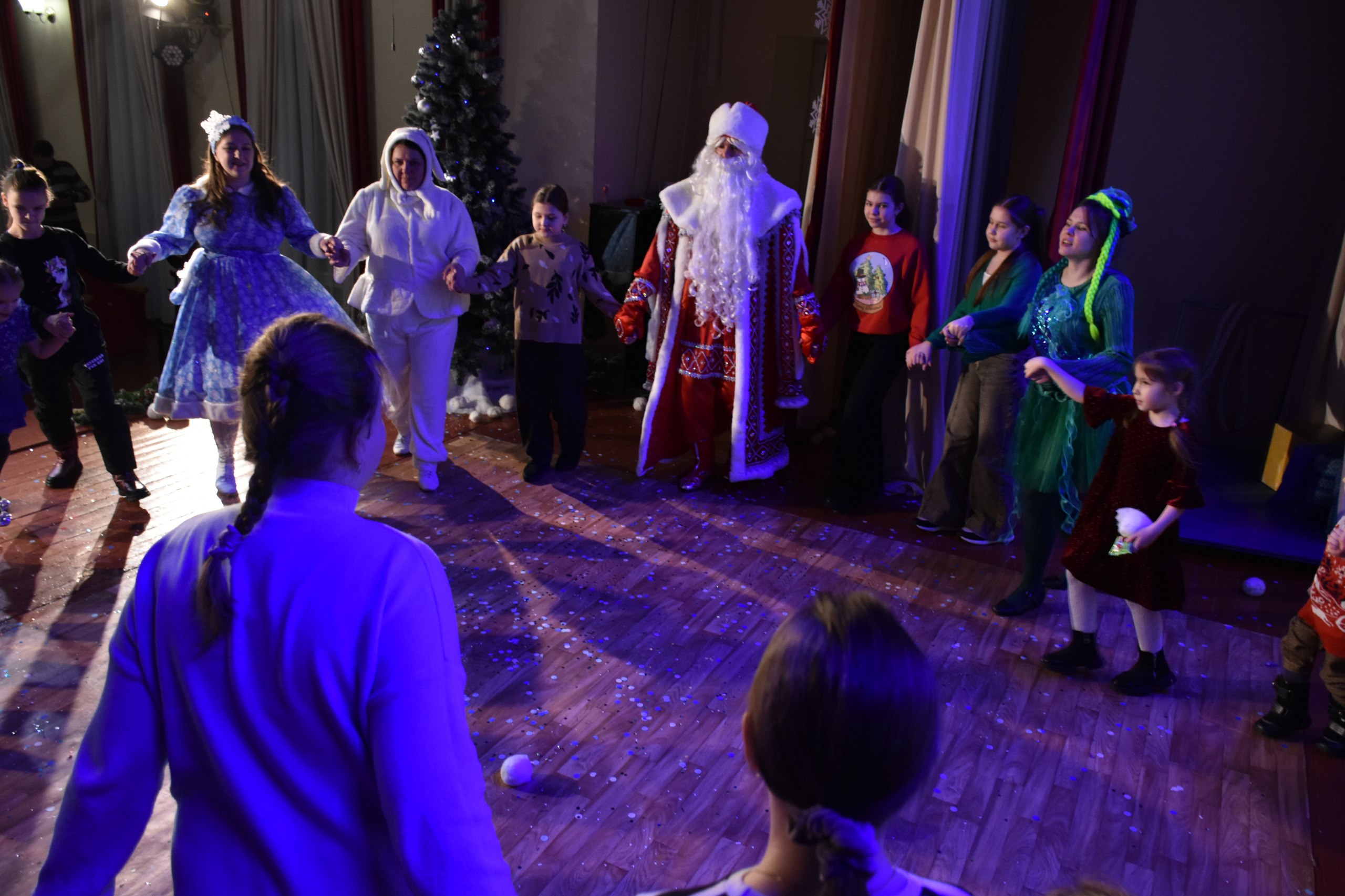 Ребята стали участниками захватывающего новогоднего приключения, где храбрые Заяц и Снеговик спасли Новый год из лап коварной Бабы Яги и Кикиморы, похитивших новогодний календарь. Яркое представление, весёлые игры, зажигательные танцы от Деда Мороза и Снегурочки подарили детям море радости и позитивных эмоций!