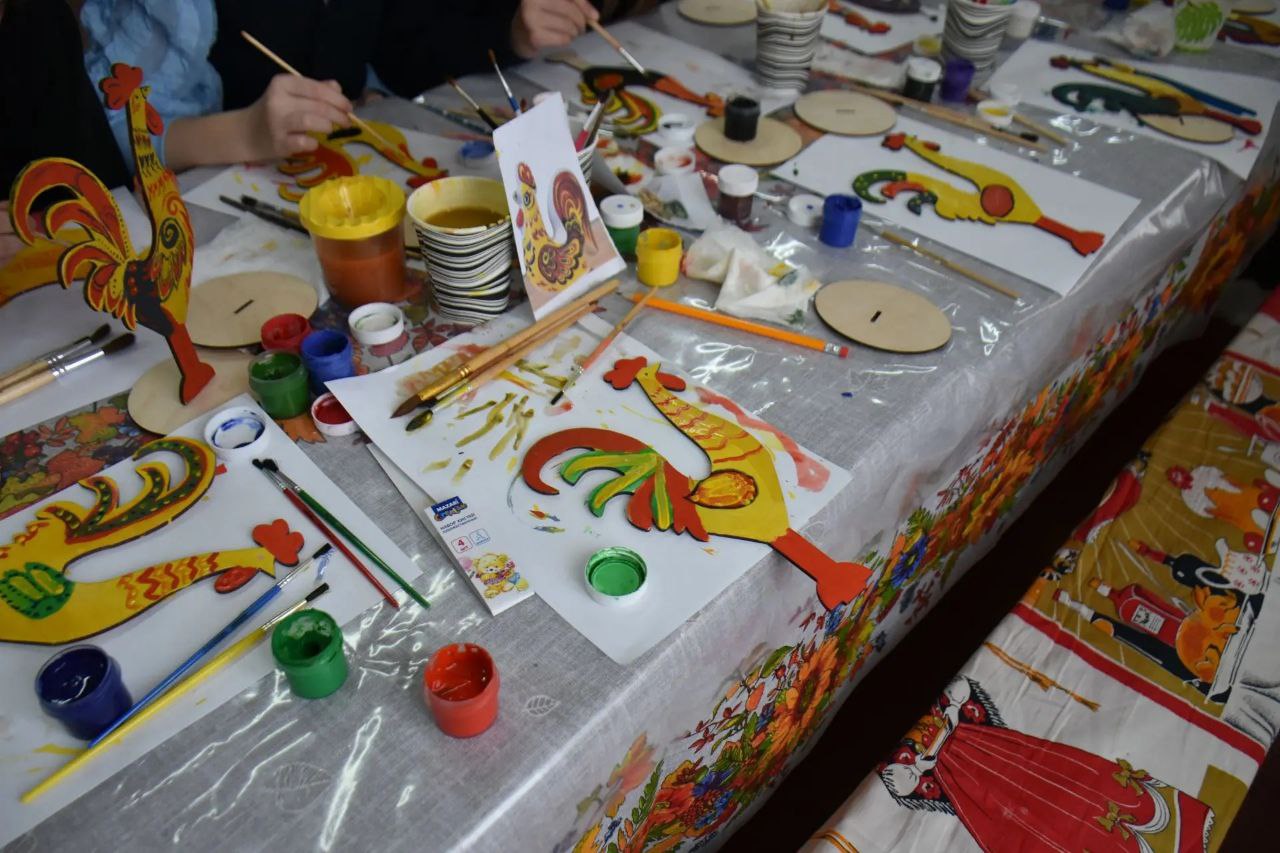 Под чутким руководством наших мастериц у каждого ученика петушок получился уникальным: с пышными гребнями, хитрыми глазами и разноцветными перьями, он обещал принести в дом радость и удачу.