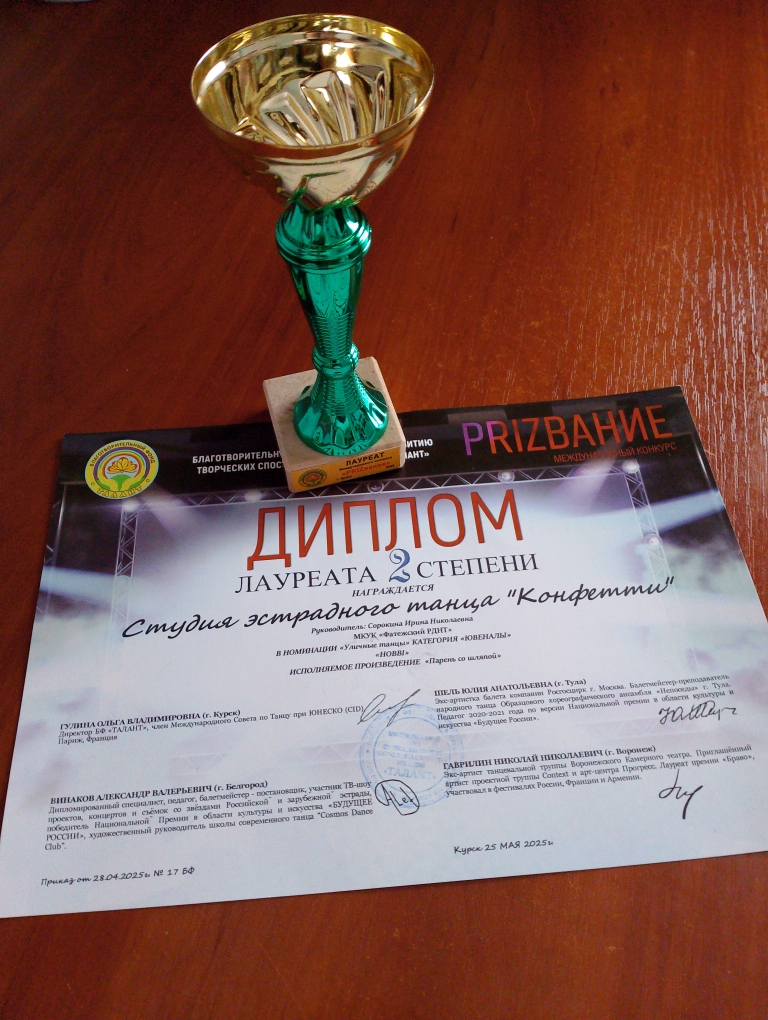 Участникам студии эстрадного танца «Конфетти» присвоили Лауреата 2 степени. Поздравляем!