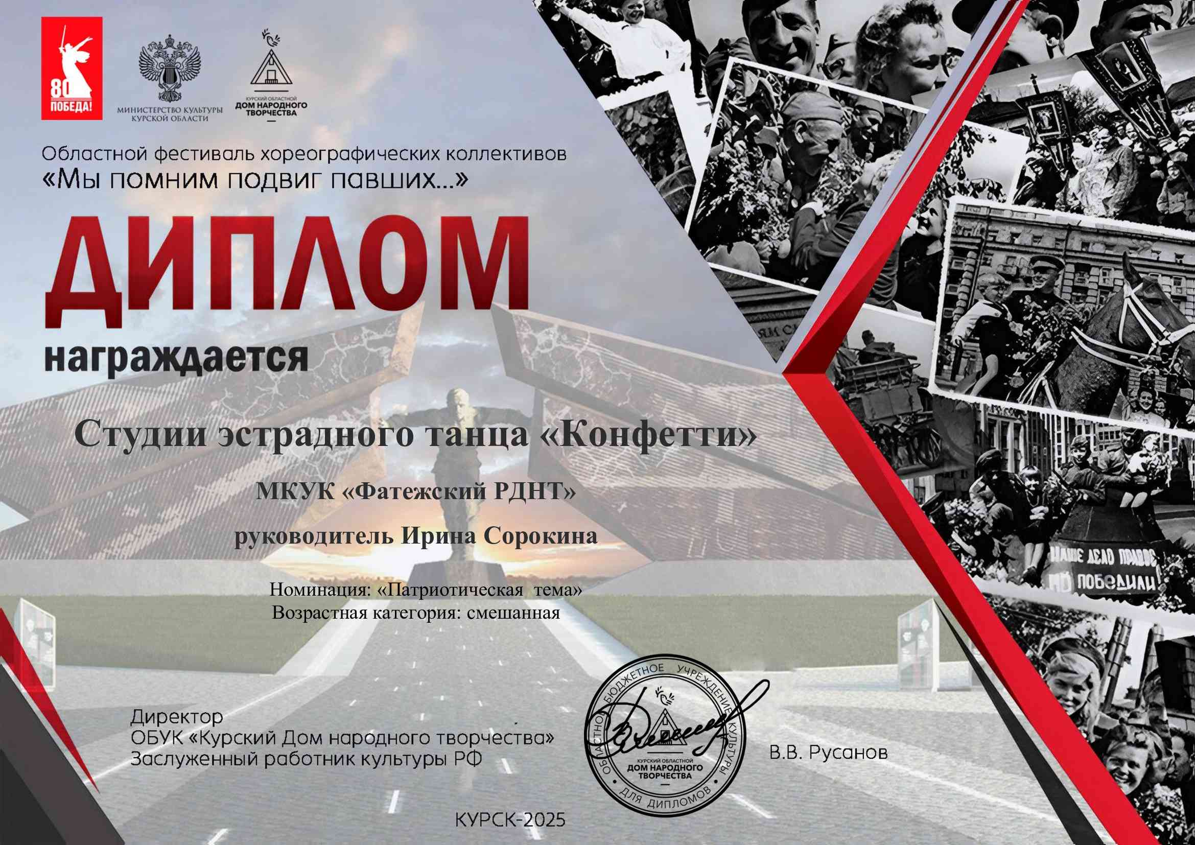 мать». Так же дипломы участников получили студия эстрадного танца « Конфетти»