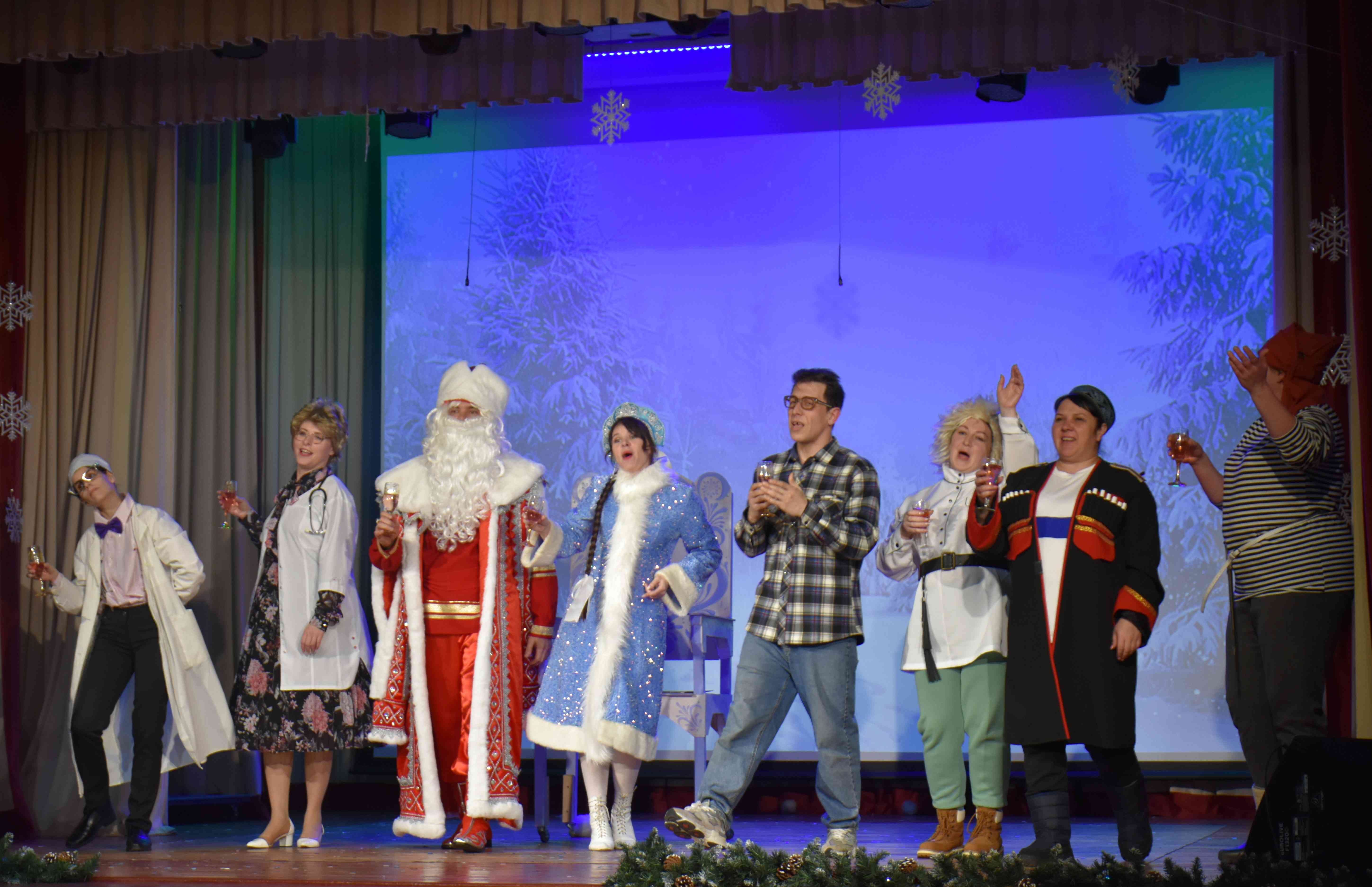 29 декабря на сцене Фатежского районного Дома народного творчества с успехом прошёл праздничный концерт «Операция новЫй год», главными героями которого стали всеми любимые персонажи культовых советских комедий – «Операция «Ы» и «Кавказская пленница».