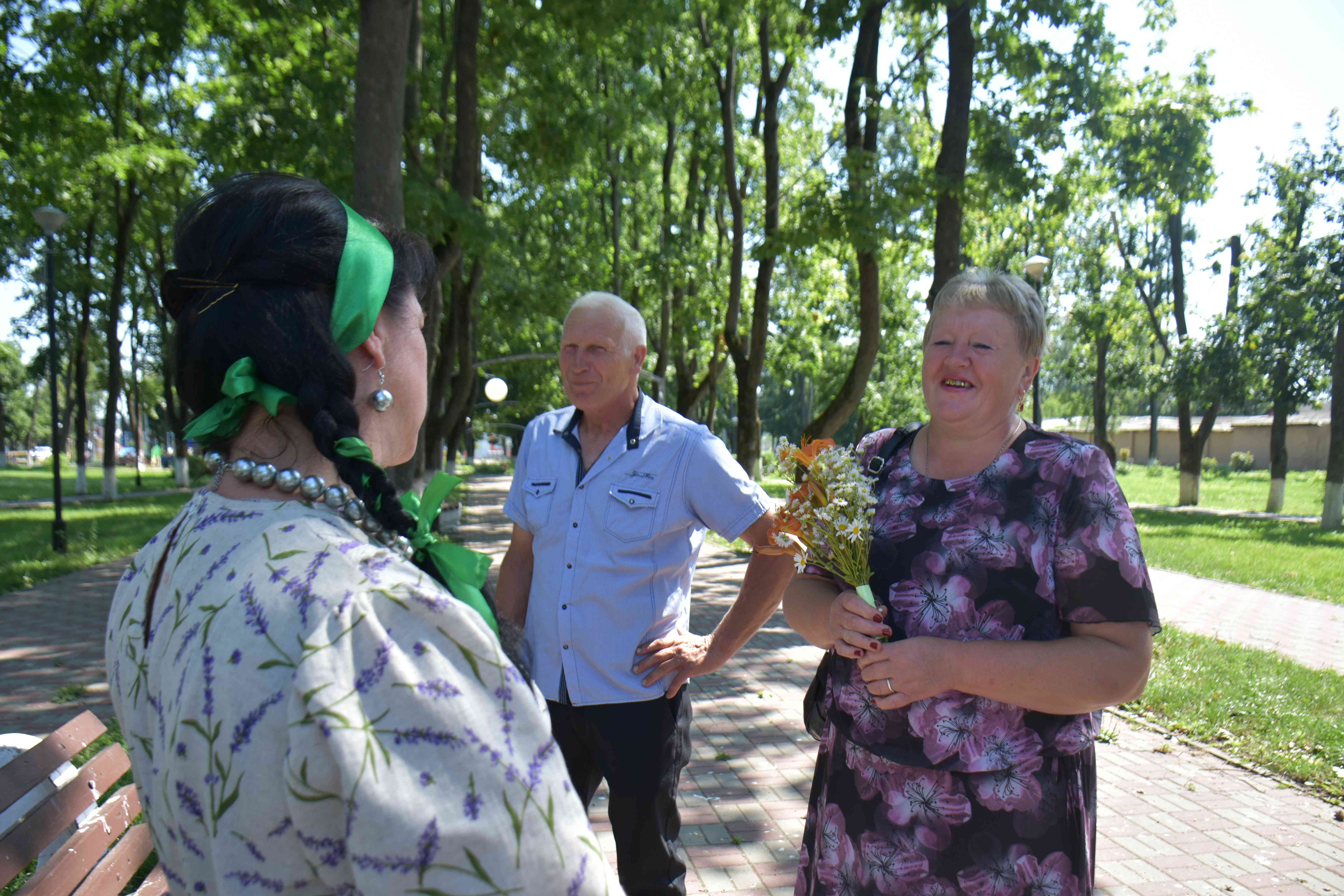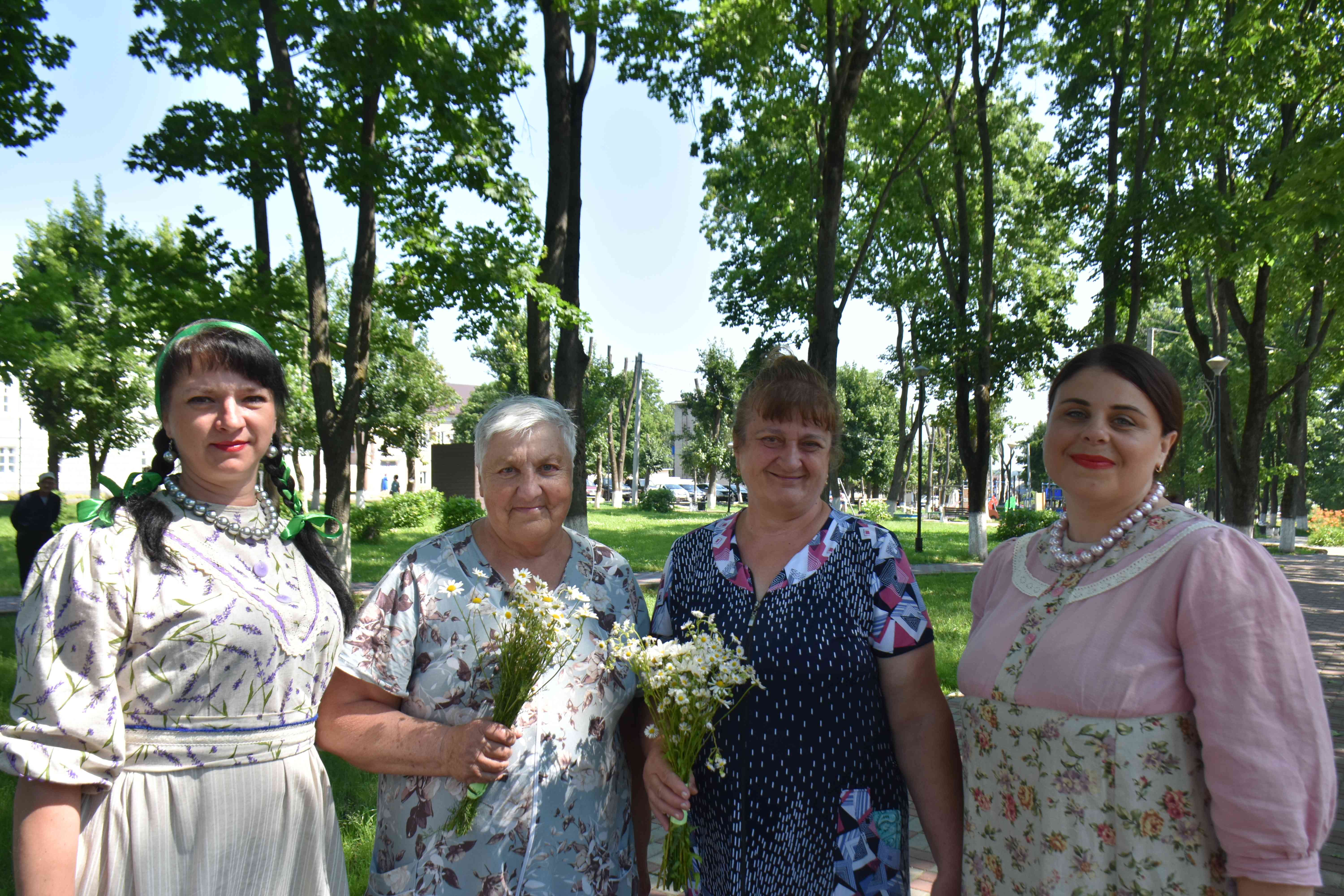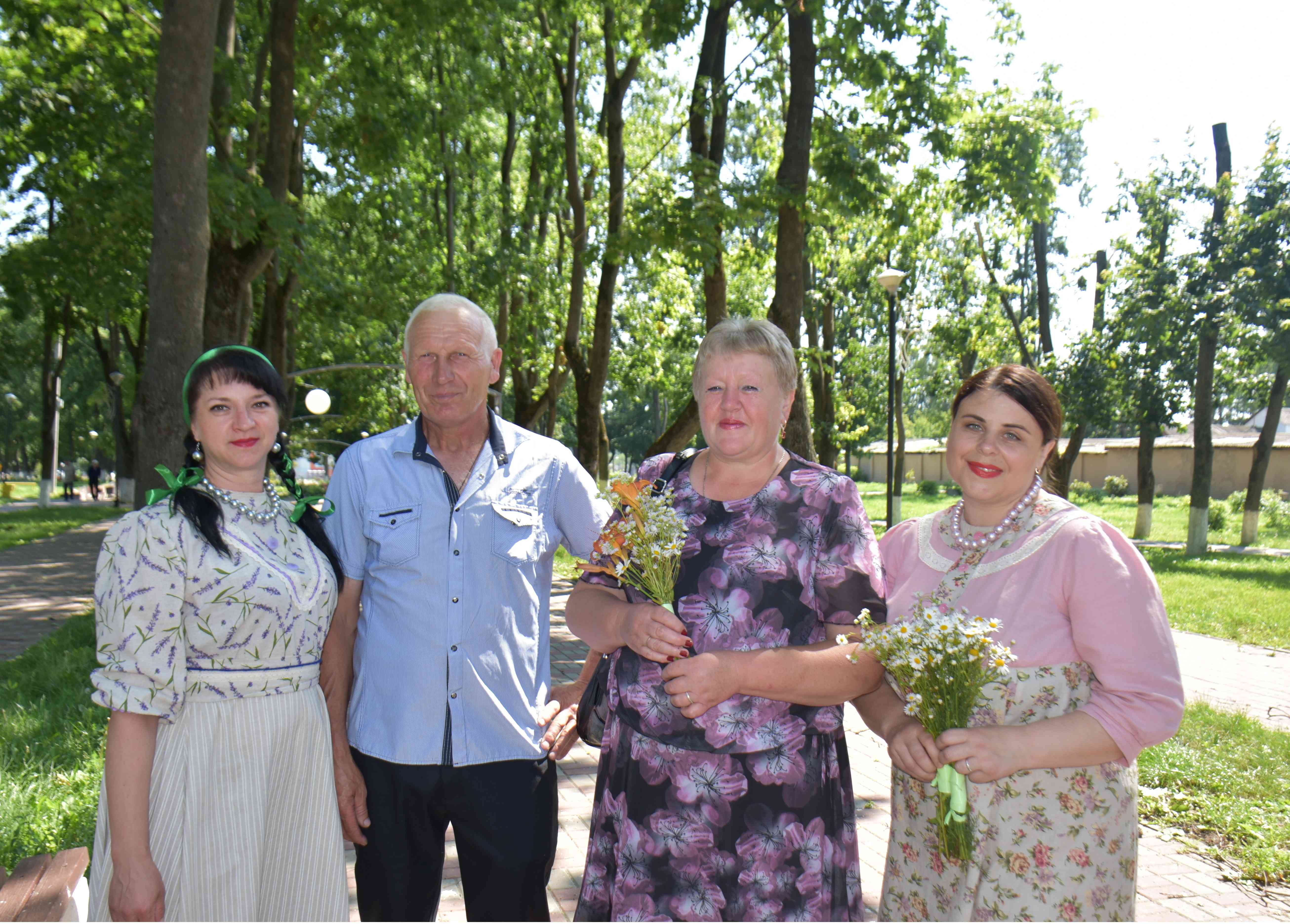 Каждый год к празднику по всей стране делают более 3 млн значков с ромашкой, букетов из этих полевых цветов, которые раздают на праздничных мероприятиях. И сегодня сотрудниками РДНТ были подарены символичные букеты из ромашек присутствующим гостям на концерте, супружеским парам раздали значки.